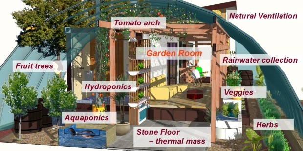 備え付けのミニファームでは常にオーガニック野菜を育て、水耕栽培キットも備えた自給自足サスティナビリティスタイル。