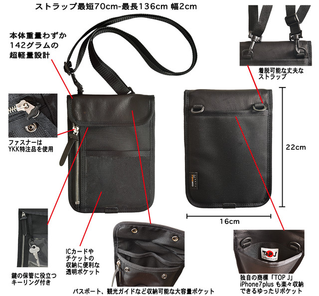 【サイズ】横16cm x 縦22cm ストラップ最短70cm-最長136cm 幅2cm