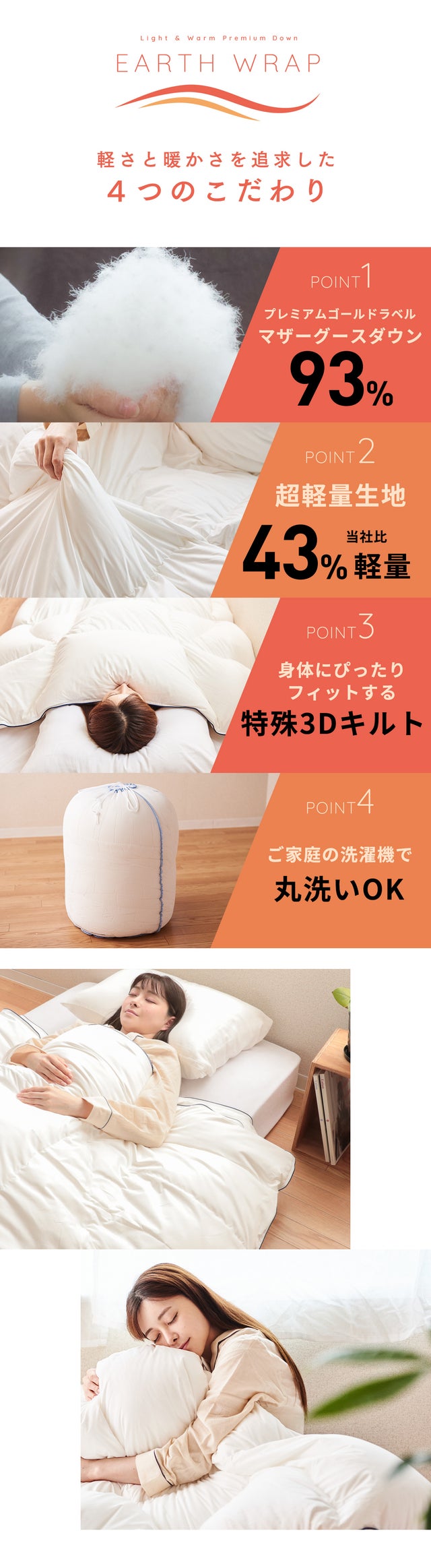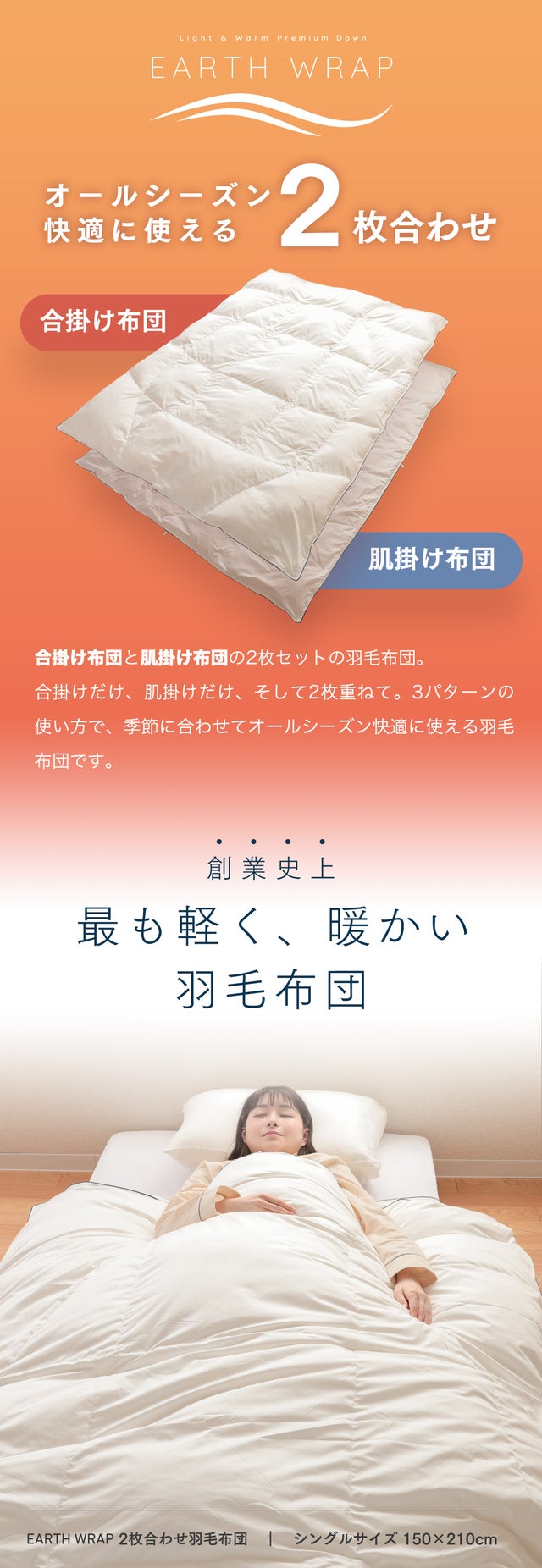 「軽さ」と「暖かさ」に究極的にこだわった羽毛布団、EARTH WRAP。