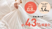 当社の一般的な羽毛布団の生地と比べると、約43%も生地の重さを軽量化。なめらかな肌ざわりは身体にも心地よくフィットし、羽毛の良さを最大限に活かしてくれます。