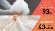 最高クラス・六つ星のプレミアムゴールドラベルを取得したマザーグースダウンを贅沢に93%配合。さらに当社従来の羽毛布団より43%も軽い超軽量生地を使用し、当社創業史上最軽量の羽毛布団に仕上がりました。