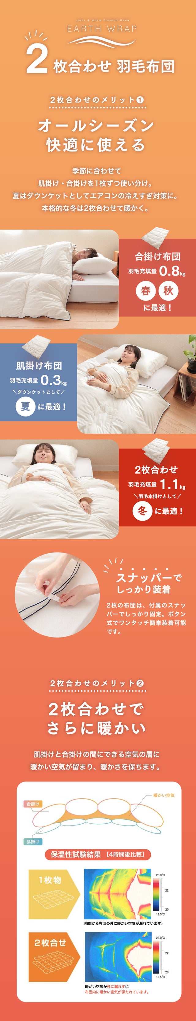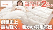 - 追求したのは軽さと暖かさ!だけではなく年中使えて、ご家庭で気軽に洗える羽毛ふとん!