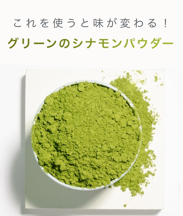 - 緑のカラーは天然の証、環境にも優しいシナモンパウダー