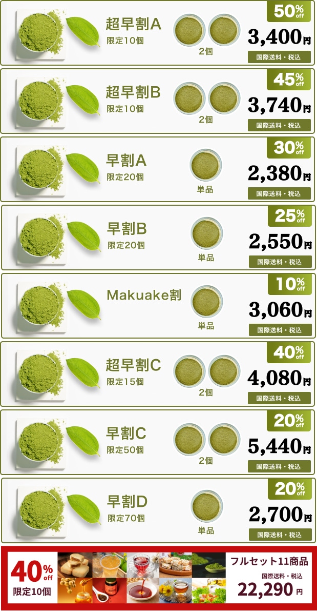 各商品のリターン全てにこちらのフルセット11商品が設定されています。