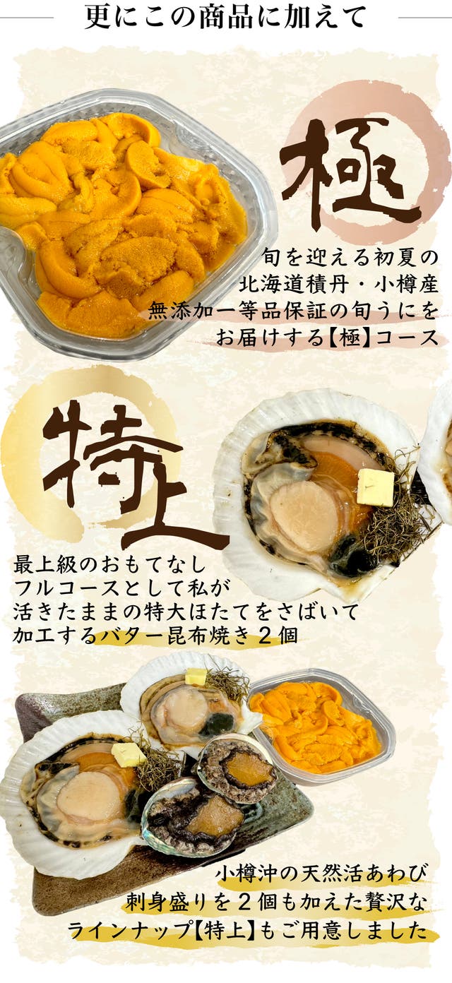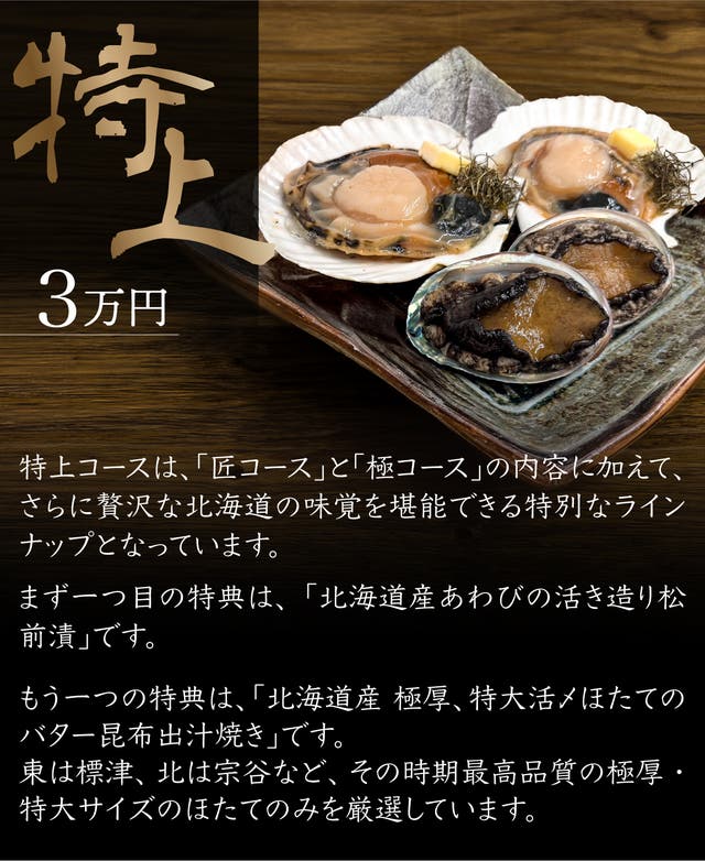 特上コースは、北海道の海の恵みを存分に味わえる、