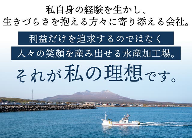 利益だけを追求するのではなく、人々の笑顔を産み出せる水産加工場を目標にしています。