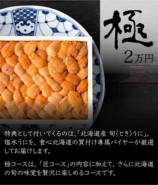 その中でも、旬の時期に獲れた最高級のうにを、極コースでは堪能していただけます。