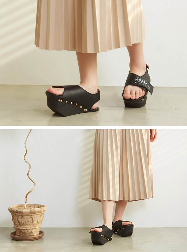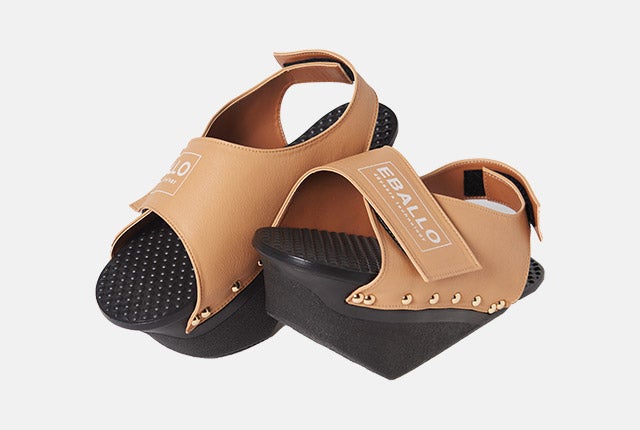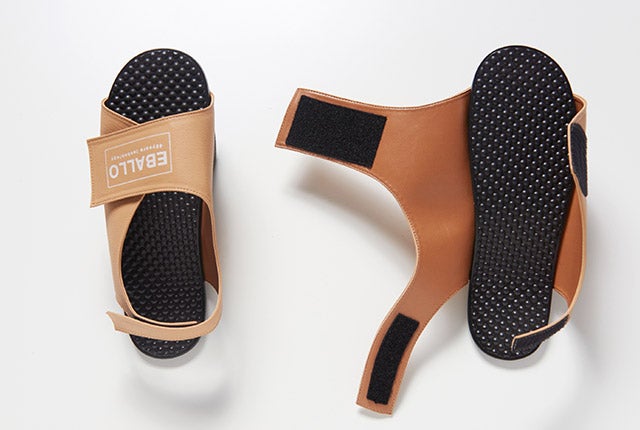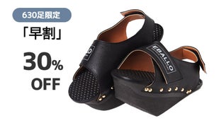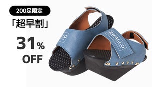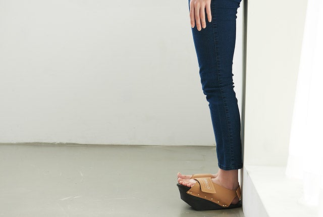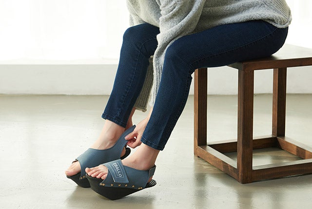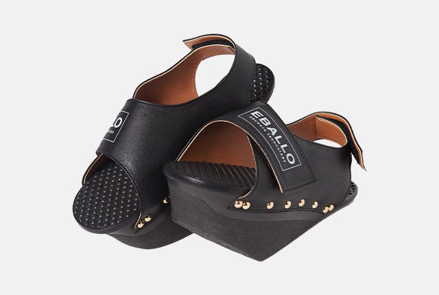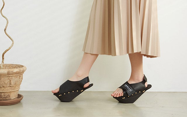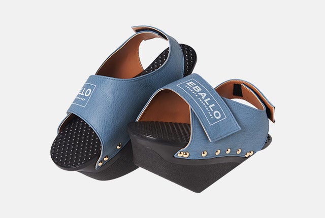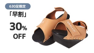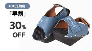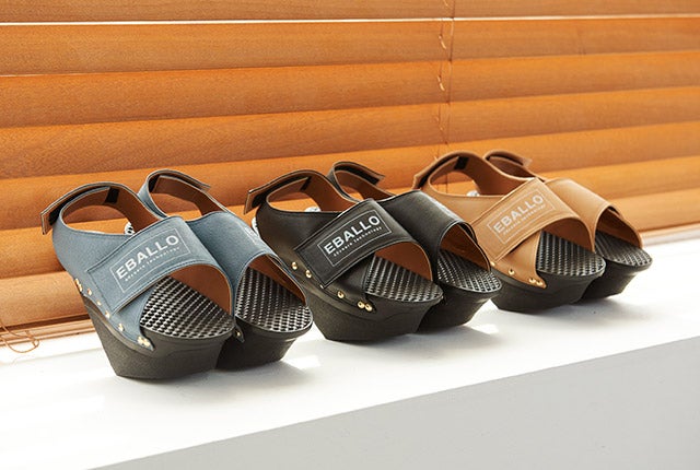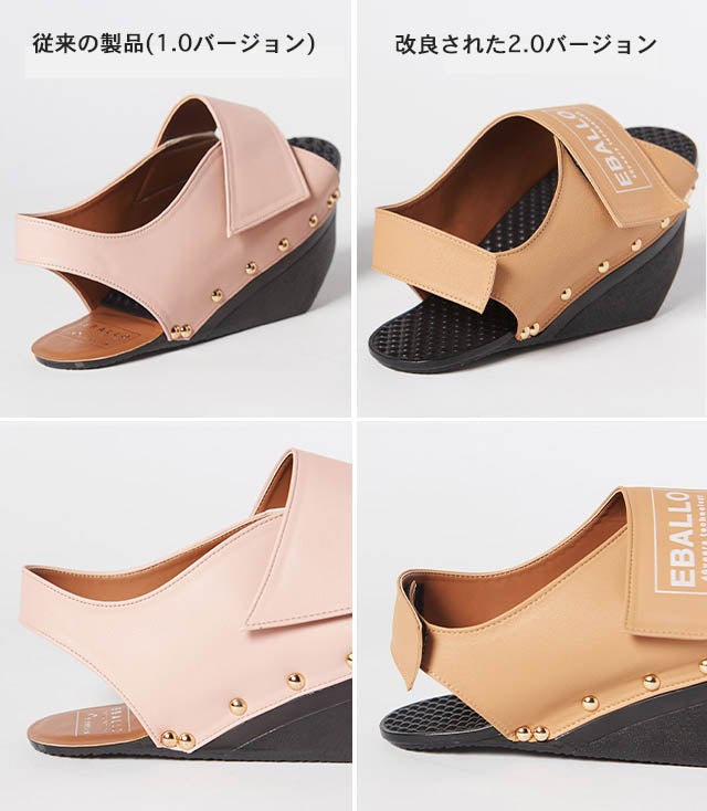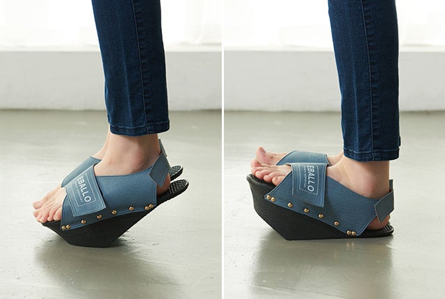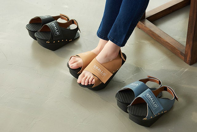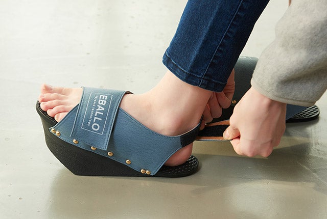 健康用シューズ製造業者EBALLOの「逆さまシューズ」は、一般的な履き物とは異なる形をしています。高めになった前踵と傾斜角を成す足底の面により、履いているだけで足裏とふくらはぎをストレッチする効果があります。立っているだけでストレッチ効果を発揮し、普段使わない筋肉に刺激を与えてくれます。