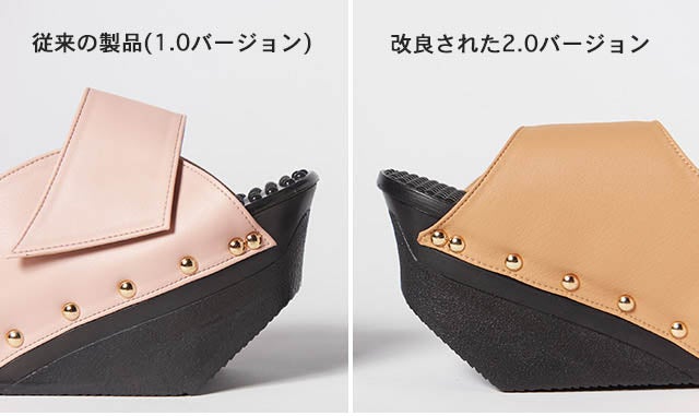踵部分が合成皮革で作られた従来の製品とは異なり、改良されたバージョンでは足裏全体に指圧突起を施し、より一層強力になった指圧効果を実現しました。