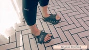 シューズを履いて重心を前後交互に5回、踵をつけて5分程度そのままでいるとふくらはぎの裏側が刺激され、ふくらはぎから太ももまでを気持ちよく引き締めてくれます。シューズの前側に重心を置き歩く場合、慣れないうちはバランスを取ることが難しく、慣れるまで時間を要しますので十分ご注意ください。はじめのうちは踵に重心を置いて立つ方法を毎日5分〜10分続けながら、徐々に慣れさせることをお勧めいたします。