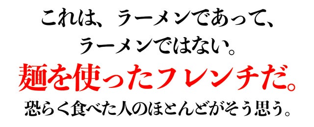 そこで!!私は、日本人が愛してやまないラーメンにフレンチを融合して、気軽に本格フレンチの味を楽しんで頂こうと、このラーメン業界に参入いたしました。