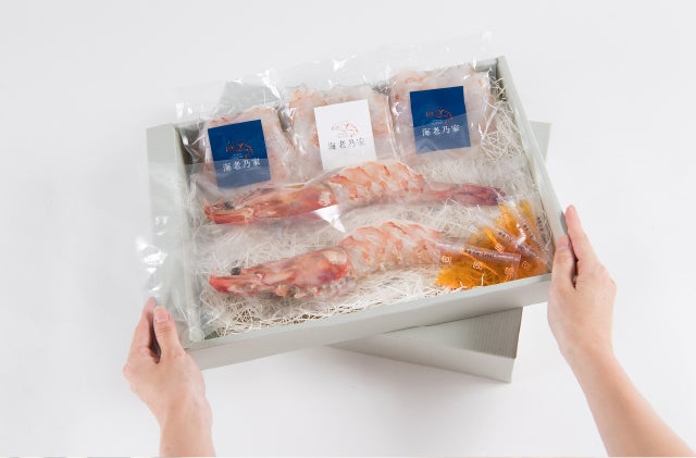 <海老乃家の霜降り海老ステーキ 2本【ギフトパッケージ版】>