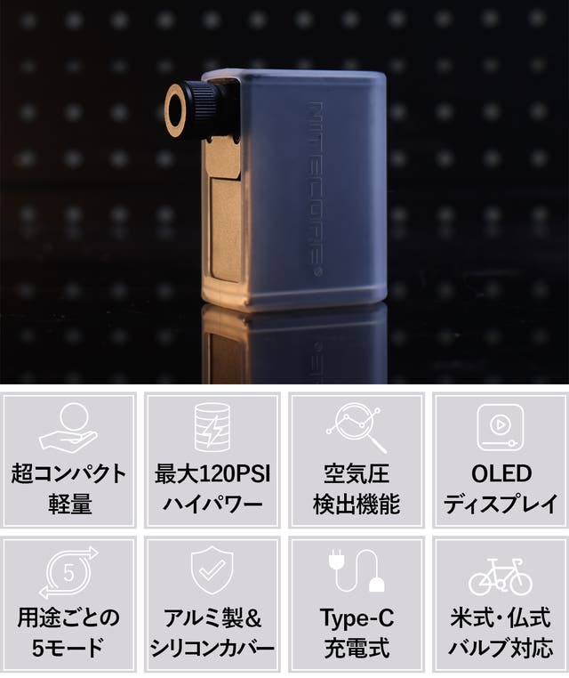 - 空気圧を検出できるOLEDディスプレイを搭載!空気圧測定でメンテナンスをもっと簡単に!