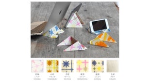 「フォルダブルBox」の発明モチーフにもなった、1枚をさっと折るだけで、スマホ・タブレット・ノートPCで使える京都和紙でできたマルチモバイルスタンドです。