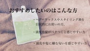 使用方法:週2日程度スタイリング剤を使用される方は頭皮・髪を濡らし適量を全体に塗布、週3〜7日でスタイリング剤を使用される方は頭皮・髪は濡らさず乾いた状態のまま、適量を頭皮と髪全体に塗布し2〜3分放置し、しっかりと濯ぎます!