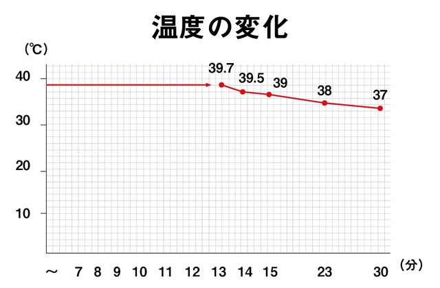 10-15分間温めた石を一度に3個投入することで、最大10℃程、水またはお湯の温度が上がります。