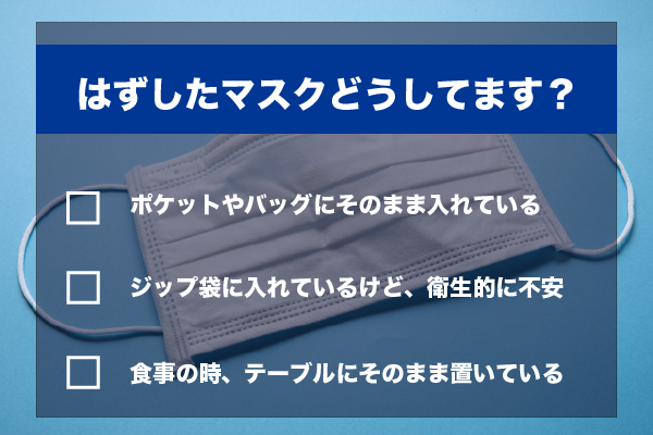 ご使用中のマスクをポケットやカバン、ビニールに直接入れると、菌が繁殖する可能性があり不衛生です。