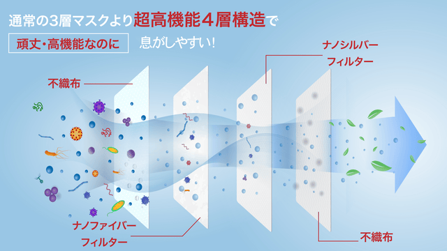 第1層と4層の不織布だけでなくナノファイバーフィルターを使用することで