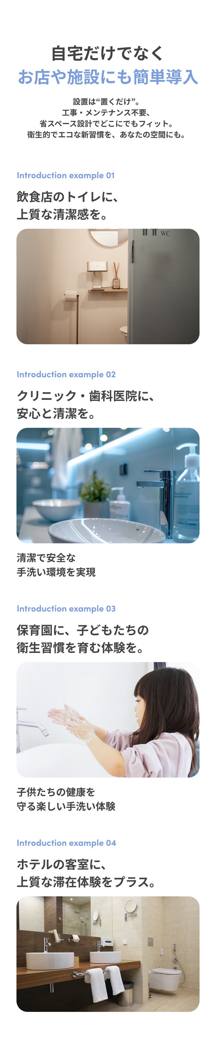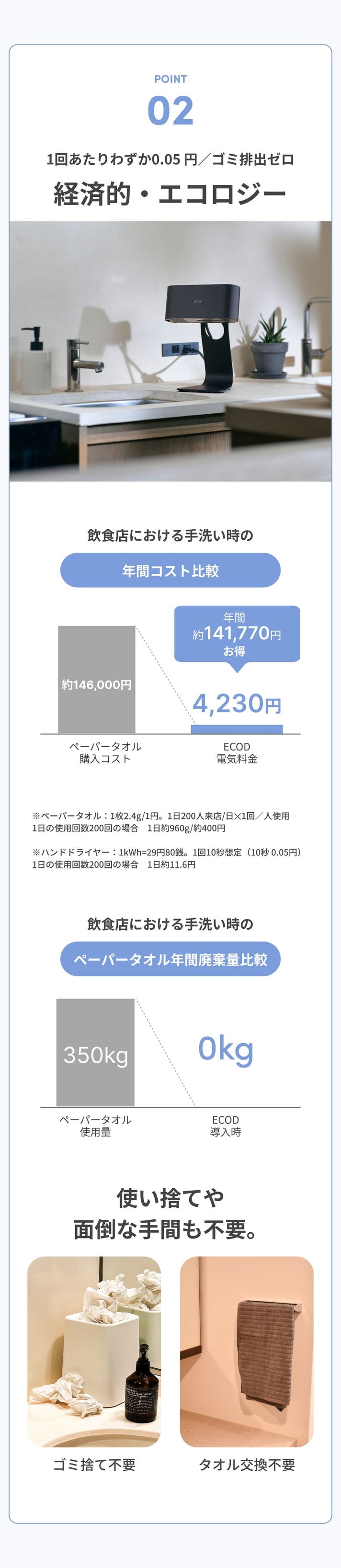 - 【経済的&エコ】ペーパーや洗濯不要でコスト削減、省エネ設計で環境にもやさしい。