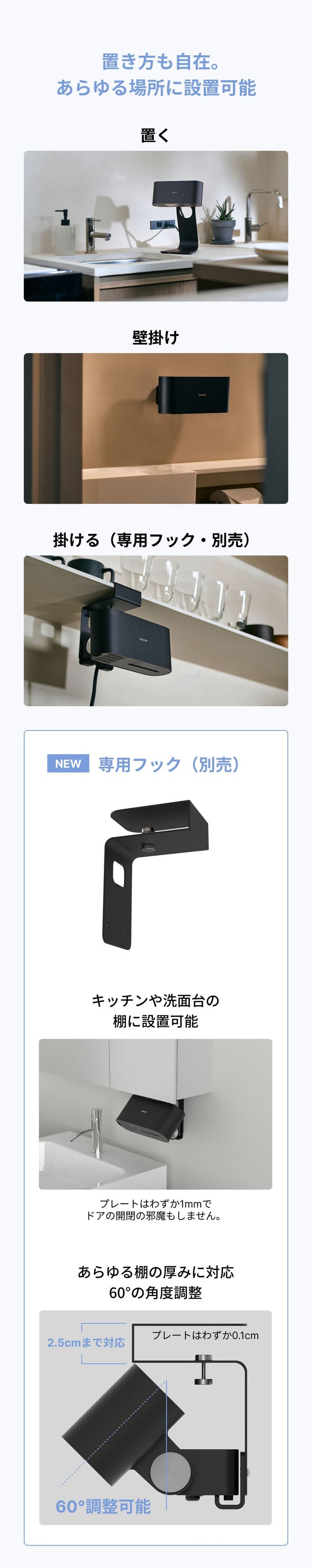 - 【感度アップ&専用フック登場】手を差し出すだけで即反応、設置自由度も広がりさらに快適に。