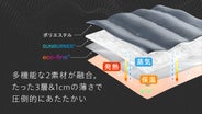 アルミシートの圧倒的な保温性に、「通気性」「やわらかさ」「洗える」などの快適性をプラスした自社開発テキスタイル「eco-fineⓇ」。