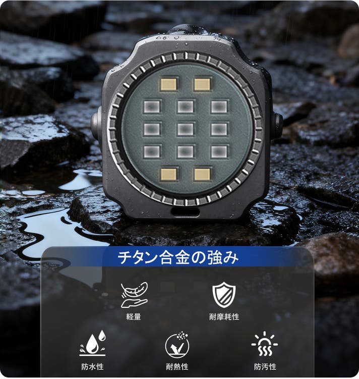 - コンパクトでパワフル:コインサイズのチタン合金ボディで、最大300ルーメンの明るさを実現。