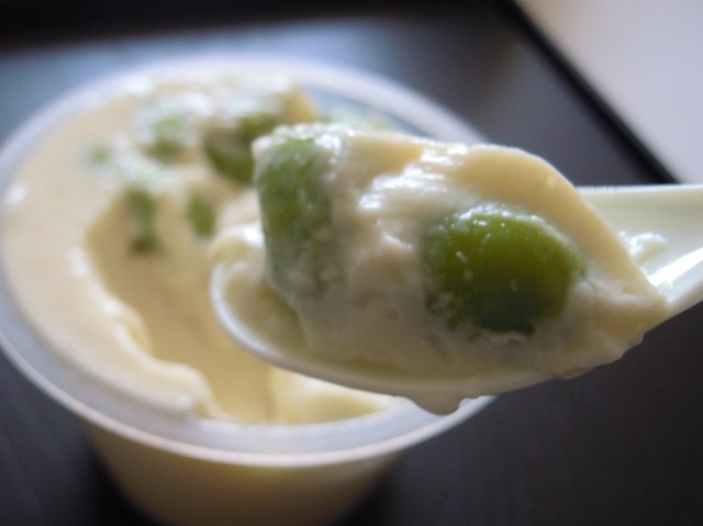 製造法の都合上、カップの上の方に枝豆が集中しております。