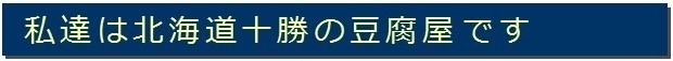 私達は、日本有数の大豆の産地・十勝で頑張っている小さな豆腐屋です。