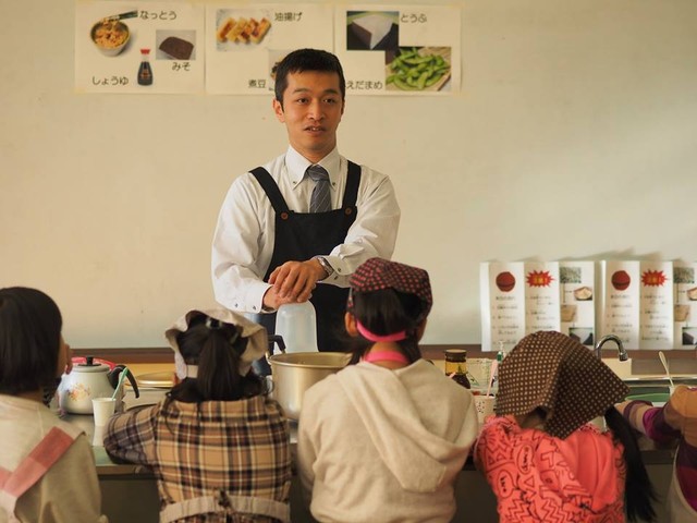 3年前から、地元の小学校を訪問し、豆腐作り体験教室を開催しています。