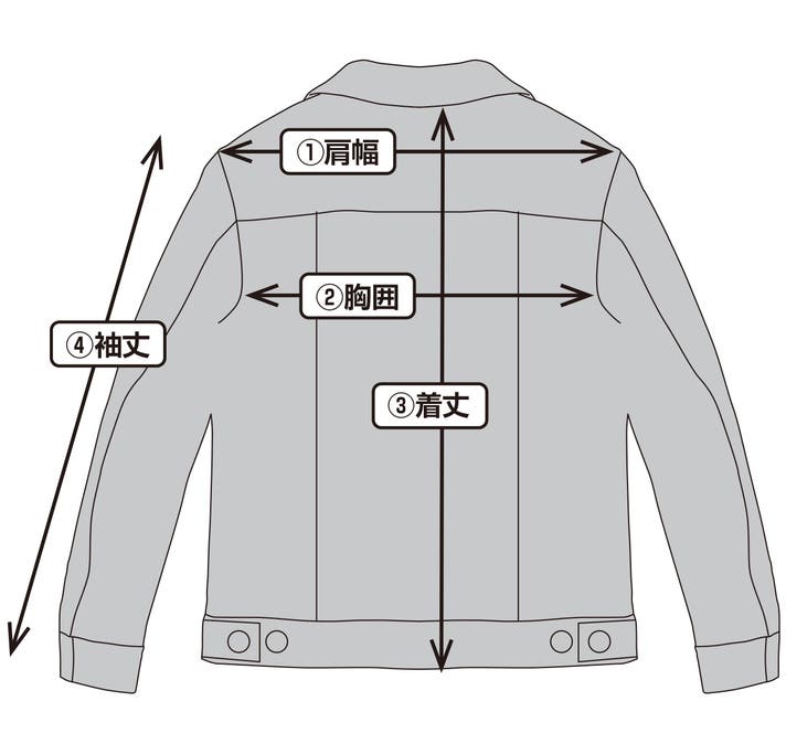 イラストの①肩幅②胸囲③着丈④袖丈の、ご自身のヌードサイズを把握しておくことで、お好みのサイズ感を選択することができ、サイズ選びで失敗を防ぐことができます。