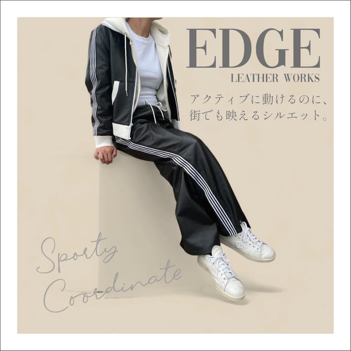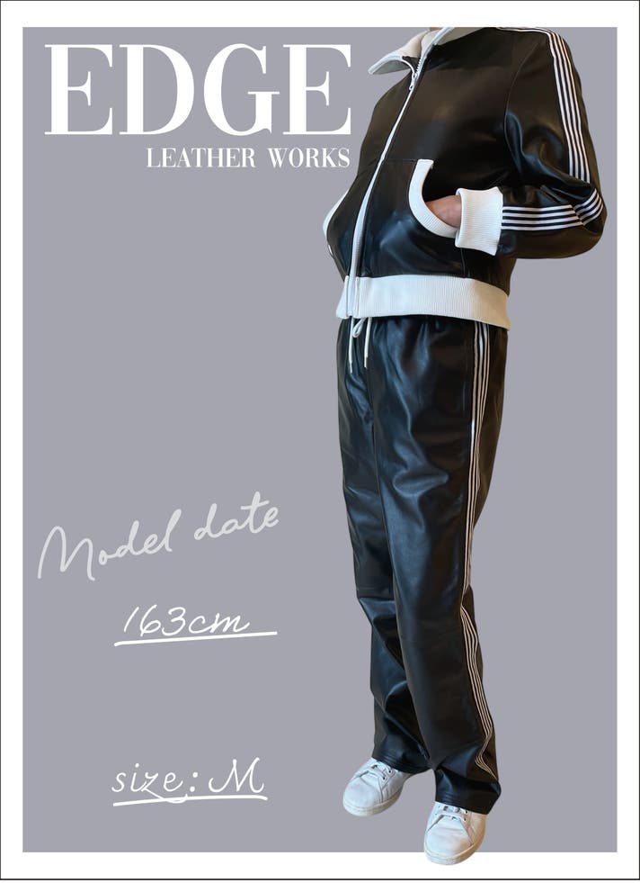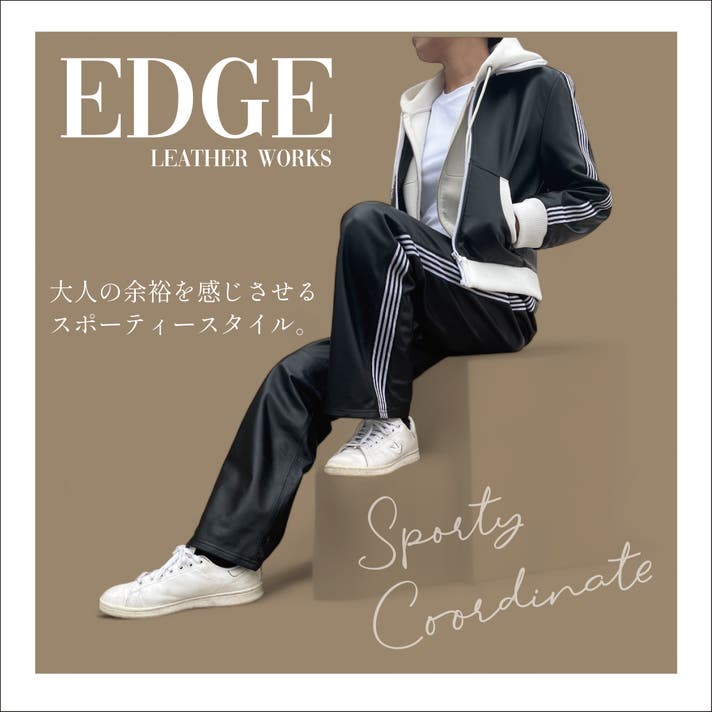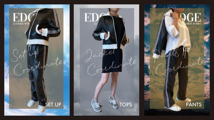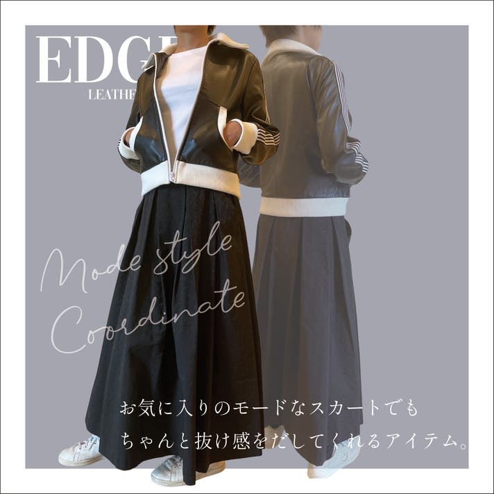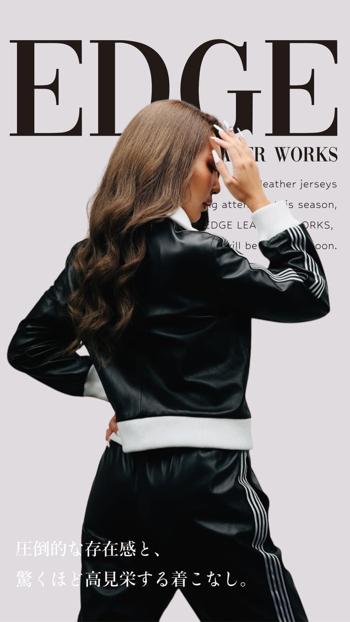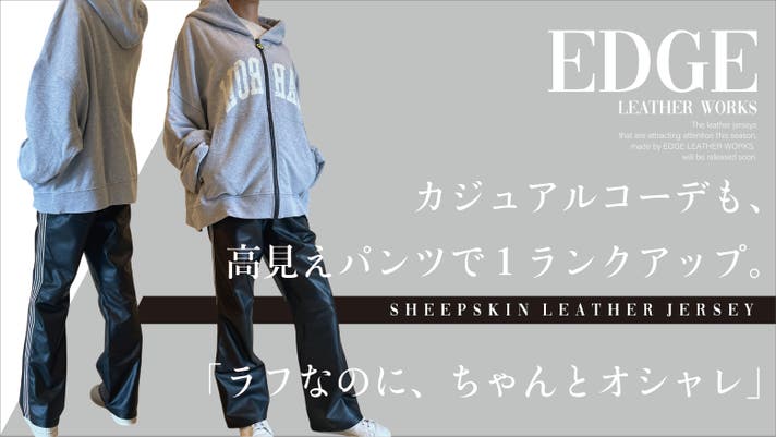 いつもの日常コーデにラグジュアリーなレザージャージをプラスすることで、高見えすること間違いないです。