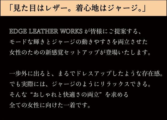 「Makuake(マクアケ)」は、実行者の想いを応援購入によって実現するアタラシイものやサービスのプラットフォームです。このページは、 ファッションカテゴリの 「軽くて柔らかく一日中着ていても疲れない。新感覚のレザージャージをセットアップで」プロジェクト詳細ページです。