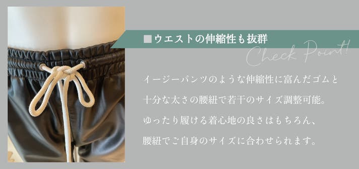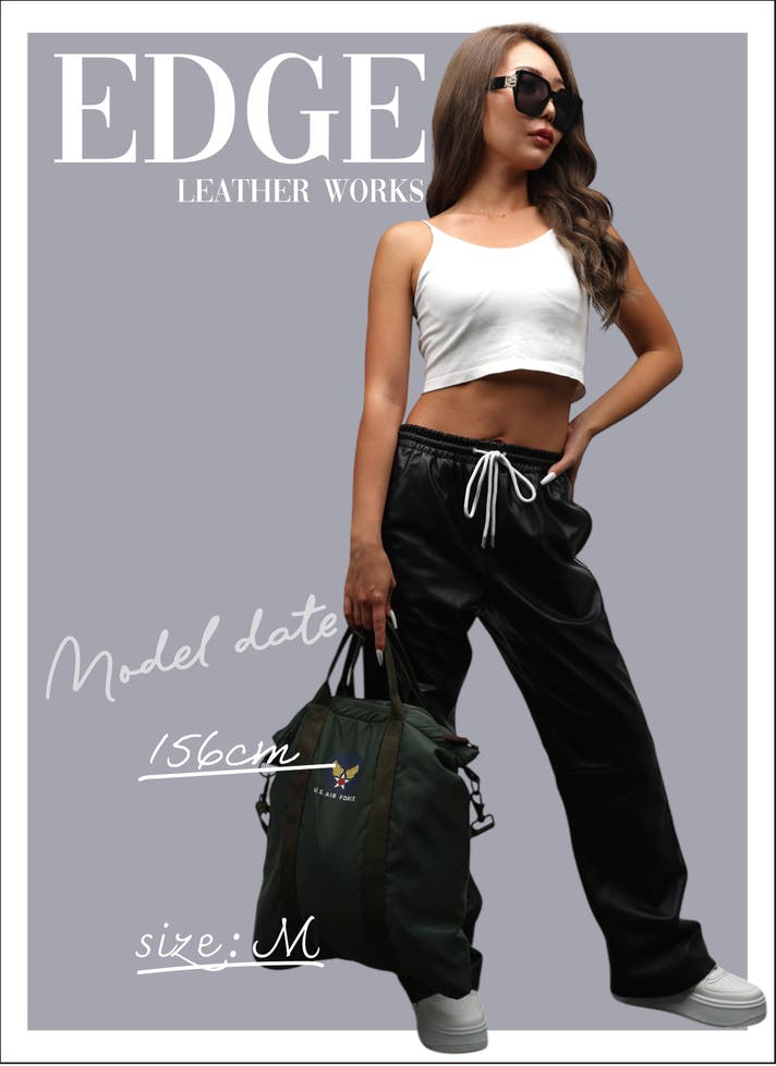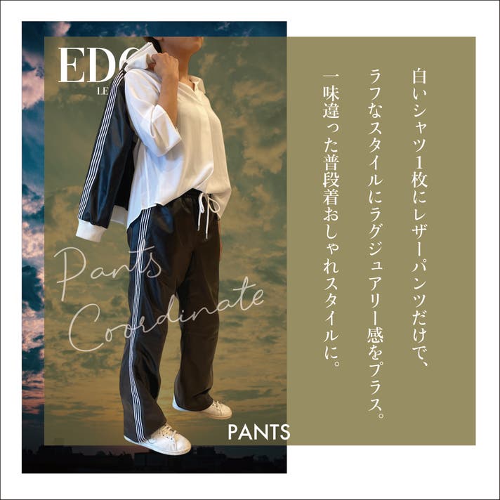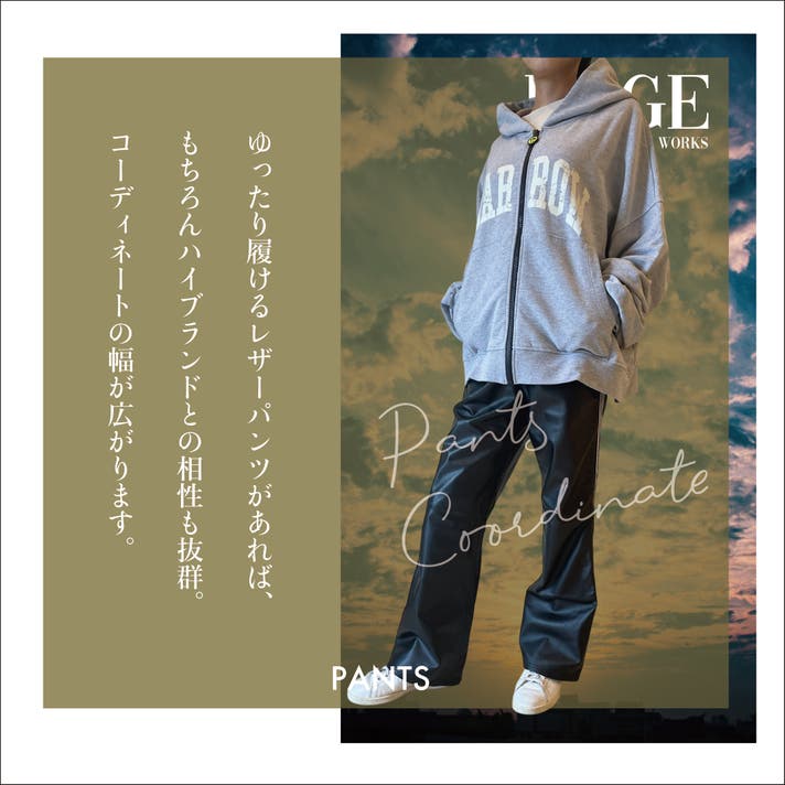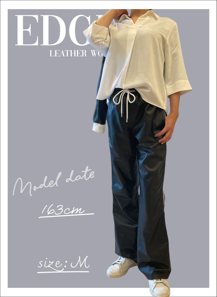 カジュアルにもモードにも合わせやすいレザーパンツです。