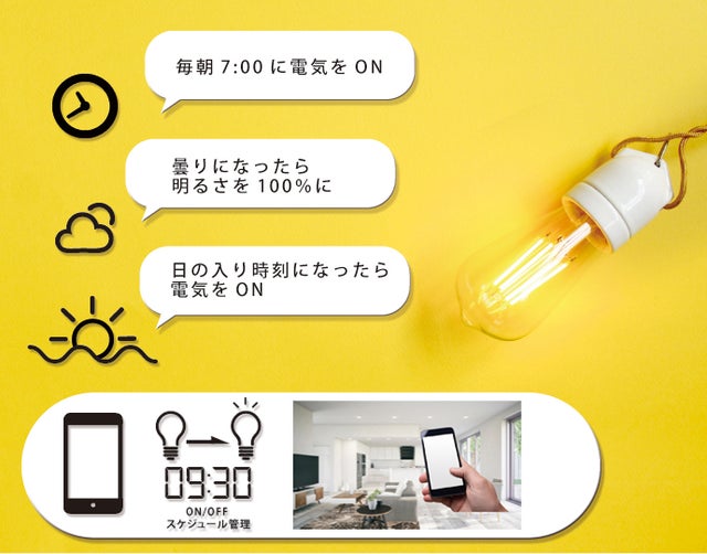 帰宅前に照明をONに、あるいは起床時間・就寝時間に自動的に照明がON/OFFになるようにタイマー設定が可能。