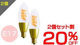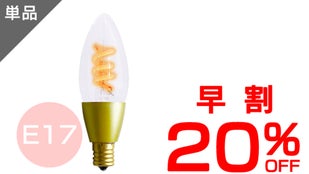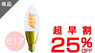 エジソンバルブLEDスマート電球初の口金「E17」タイプ。多くのお客様からE17タイプのご要望をいただきまして、ようやく開発できました!シャンデリアにはもちろん、口金E17タイプの照明器具に是非ご活用ください。