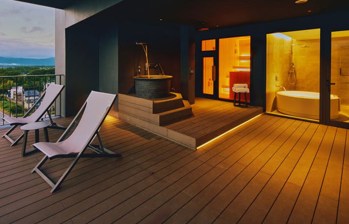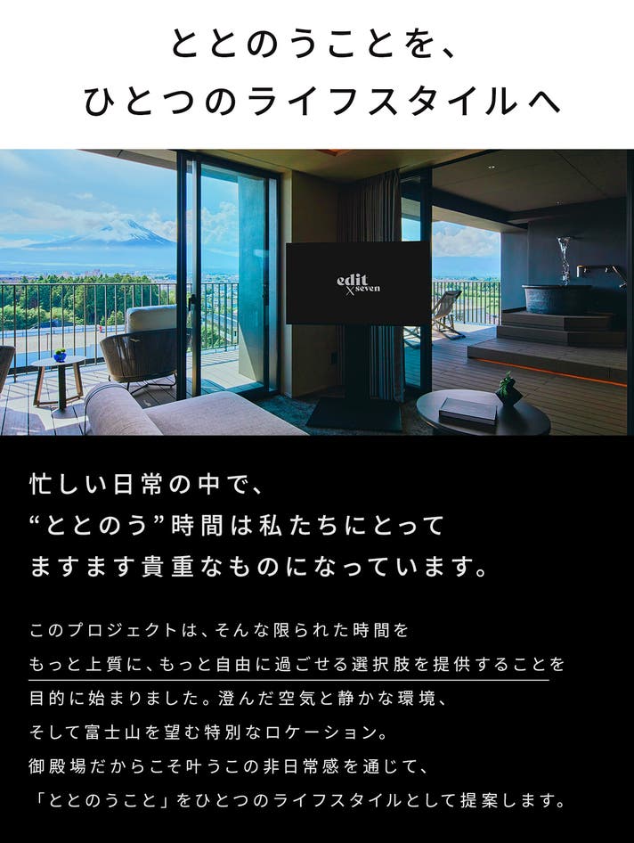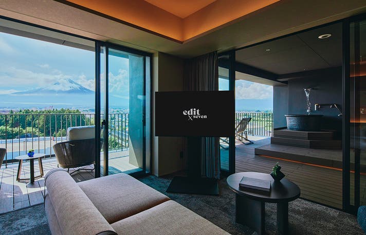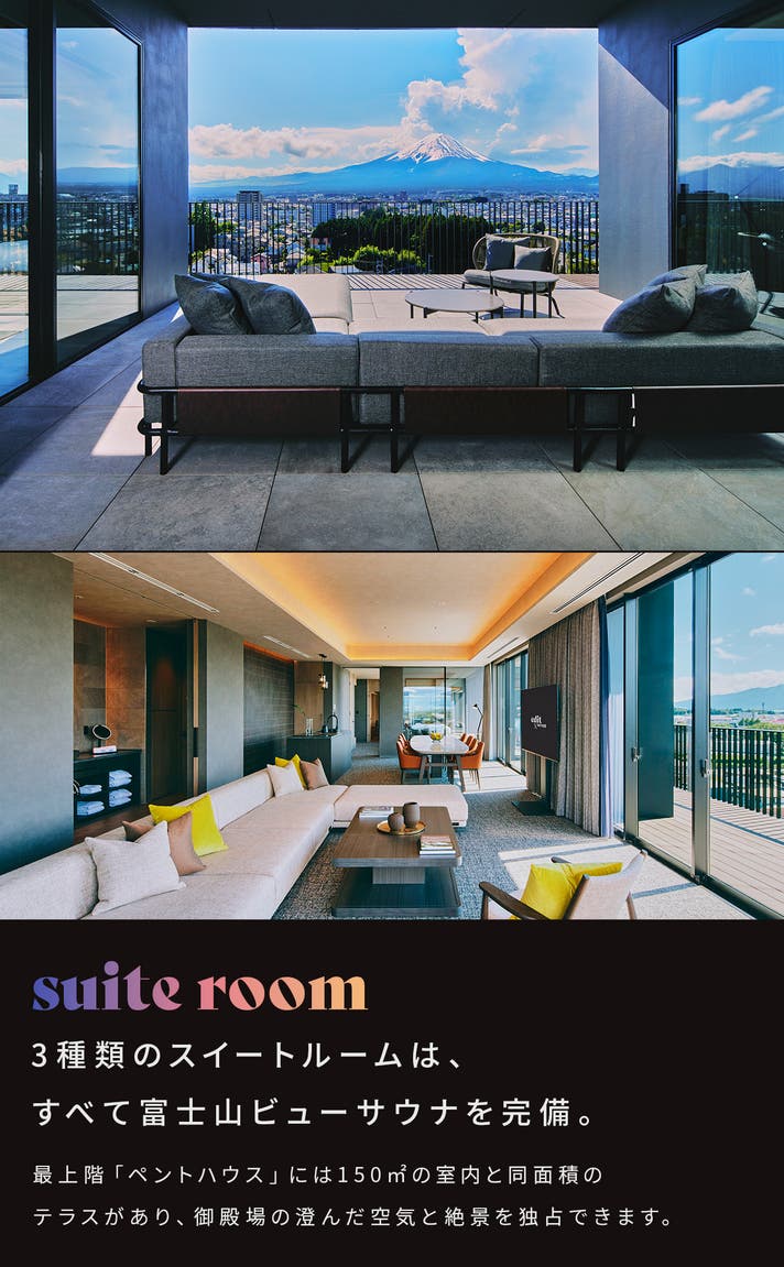 最上階には、1室のみのペントハウス・スイート。 ととのいながら、富士御殿場の絶景をひとりじめ。