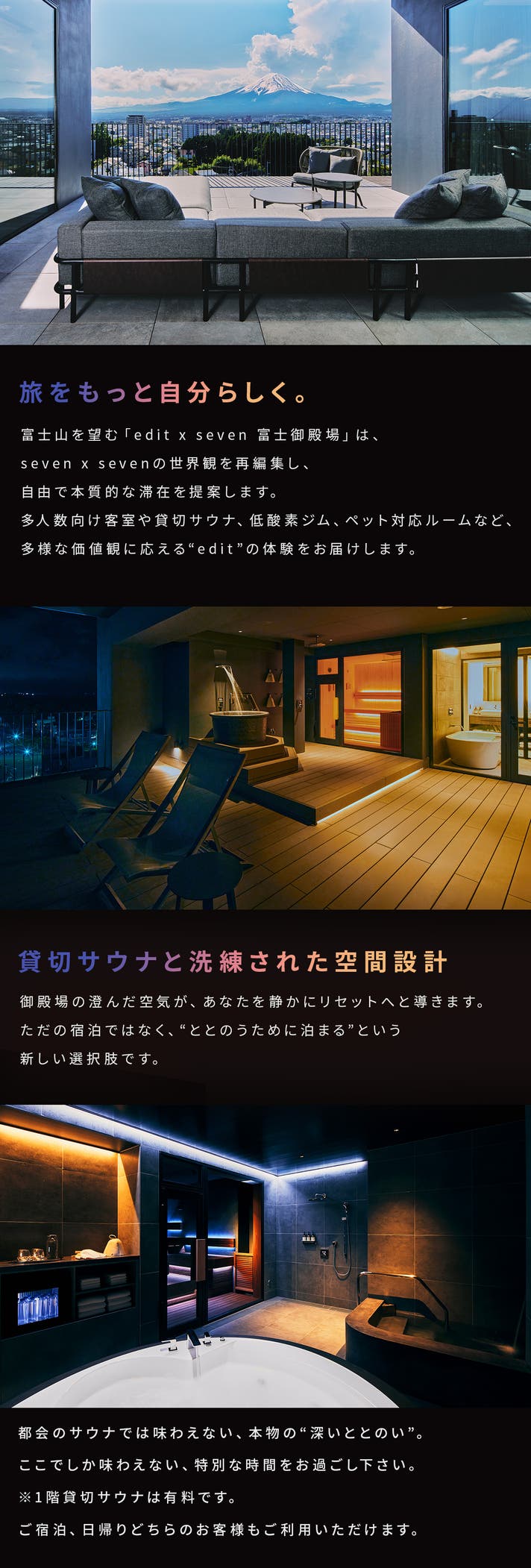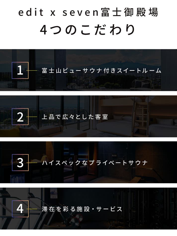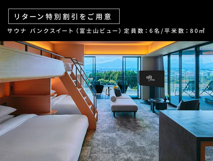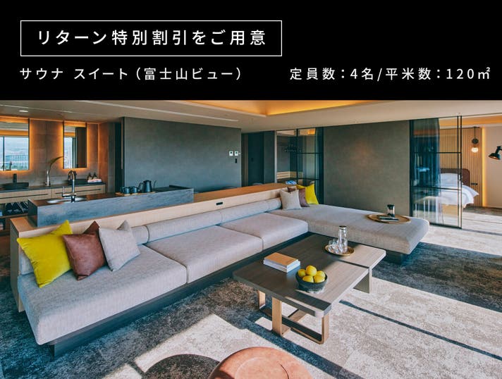 - 【富士山を望むスイートと上質な客室】非日常を存分に味わえるサウナ付きホテルステイ体験