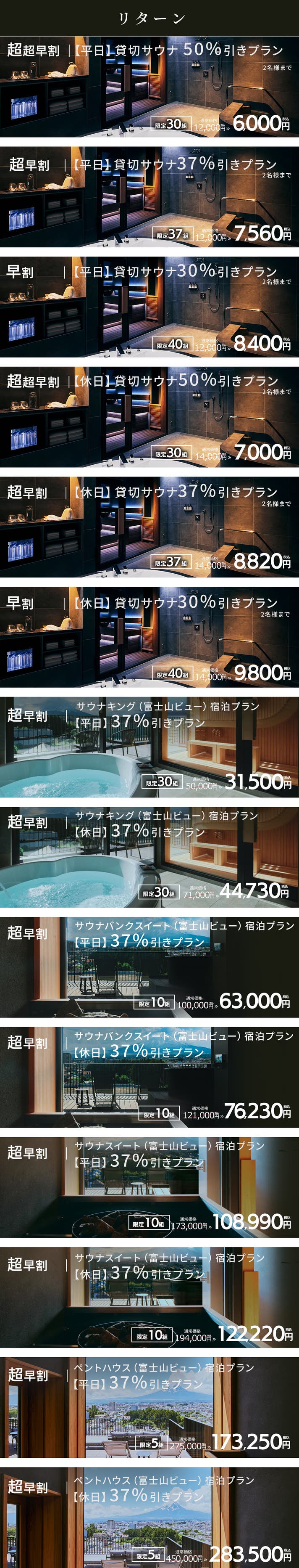 超超早割【休日】(2時間2名まで)貸切サウナ50%引きプラン
