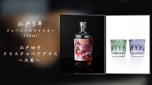 江戸5年ジャパニーズウイスキー1口瓶オーナー権+江戸切子ペアクリスタルグラス
