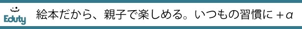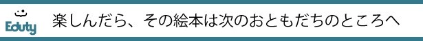 Edutyでは、気に入った絵本は手元に置いてずっと大切にして欲しい、という想いから大好きになった1冊*をお子様に差し上げます。