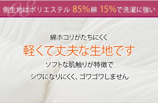- 羽毛布団を洗濯する時の洗濯ネット付き。ご家庭の洗濯機で簡単に丸洗いでき、清潔さを保てます。