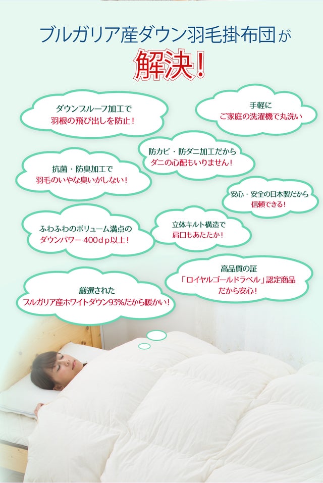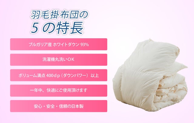 年間使える、デュエット羽毛掛布団には5つの特長があります。