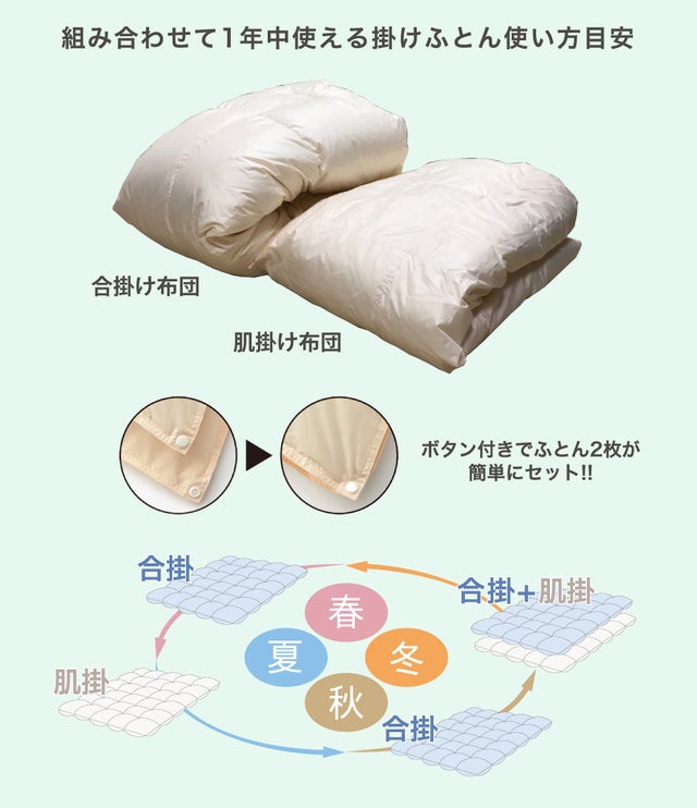 合掛け布団(充填量1.1kg)+肌掛け布団(充填量0.4kg)