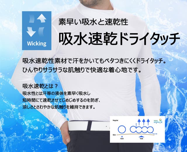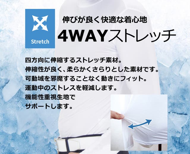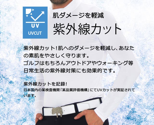 アイススキンアンダーウェアは灼熱の太陽の照らされる季節に最適、激しい日差しからの紫外線から体を守り、かいた汗を素早く乾かしサラサラにし着た瞬間にヒンヤリした感触でゴルフをはじめランニングやフットサル、フィッシングやキャンプ等、外で行動をするスポーツなどにおススメです。