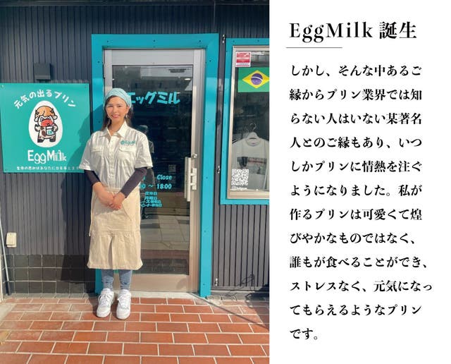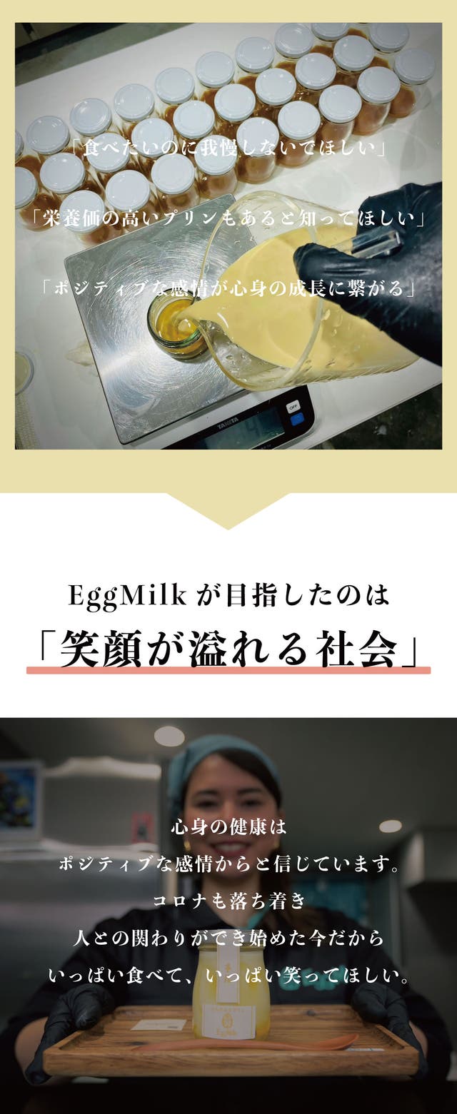 EggMilkは「プリンを通じて笑顔あふれる社会を創る」ことをスローガンに掲げる会社です。