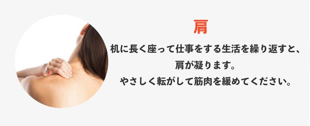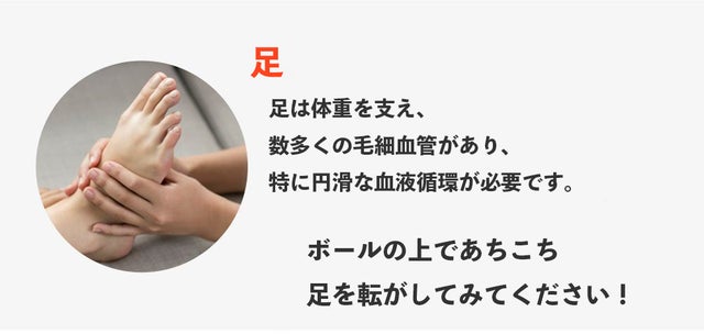 ①肩やふくらはぎなど必要なところにボールを転がして筋肉をほぐします。
