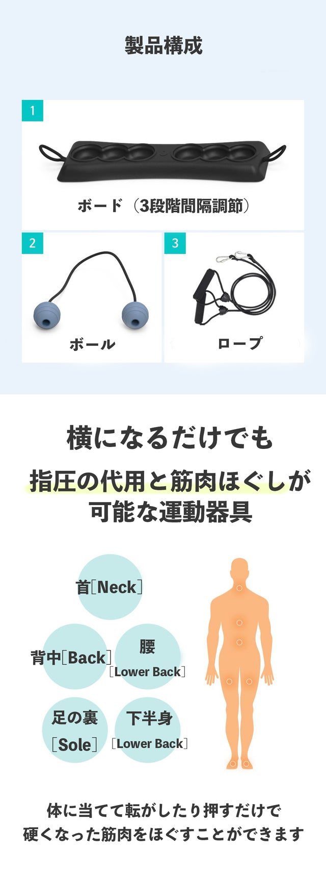 ロープを活用してボードを固定し、背中を指圧代用としてお使いください。