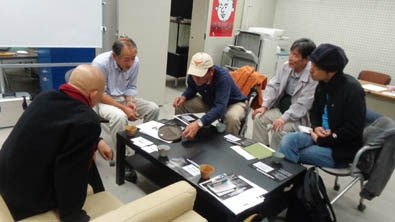 こういったなか、昨年53年前に作られた音楽映画「シンフォニー・ジャパン」(作曲:團伊麿、映像:大竹省二)が発見されました。フイルムは長い間倉庫に眠っていましたが劣化も少なく、大阪イマジカで修復し、昨年末に日本で初めてテレビ公開しました。下記写真は番組に協力頂いた作曲家の千住明さんと、アーカイブスメンバー(両サイド2名の4名)です。