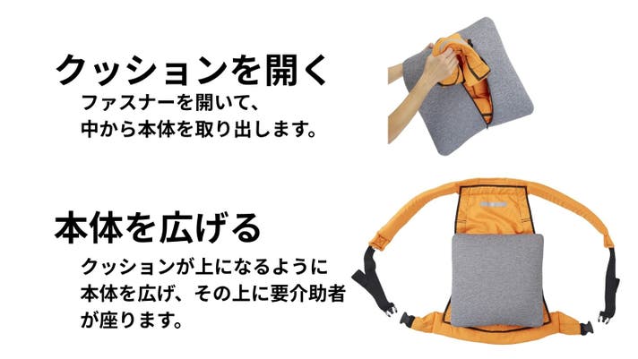 介助帯と担架になるクッション “しまわない防災” を日常に