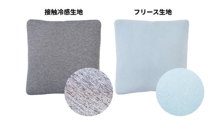 ※クッションの生地はフリース素材、接触冷感素材の1点ずつになります。